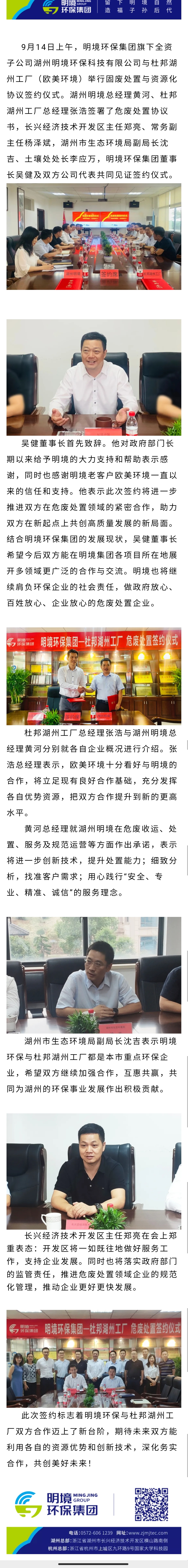 明境環(huán)保與全球知名企業(yè)杜邦公司湖州工廠簽定固廢處置與資源化協(xié)議