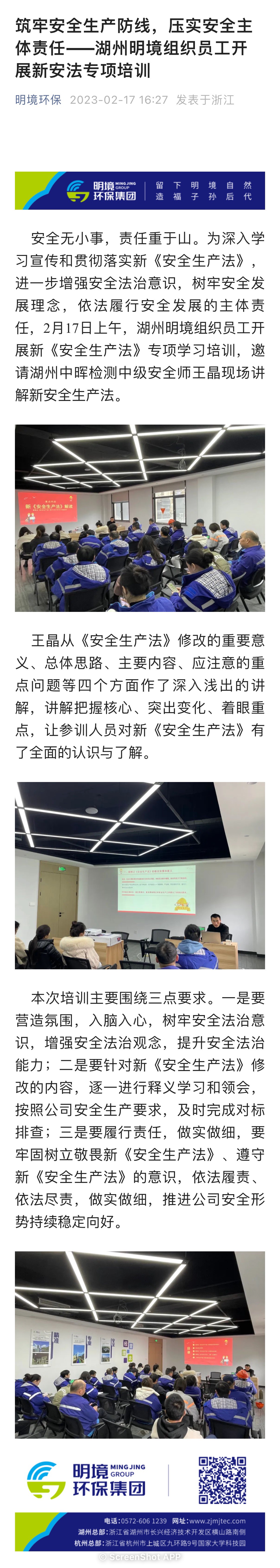 筑牢安全生產(chǎn)防線,壓實安全主體責(zé)任——湖州明境開展新安法培訓(xùn)