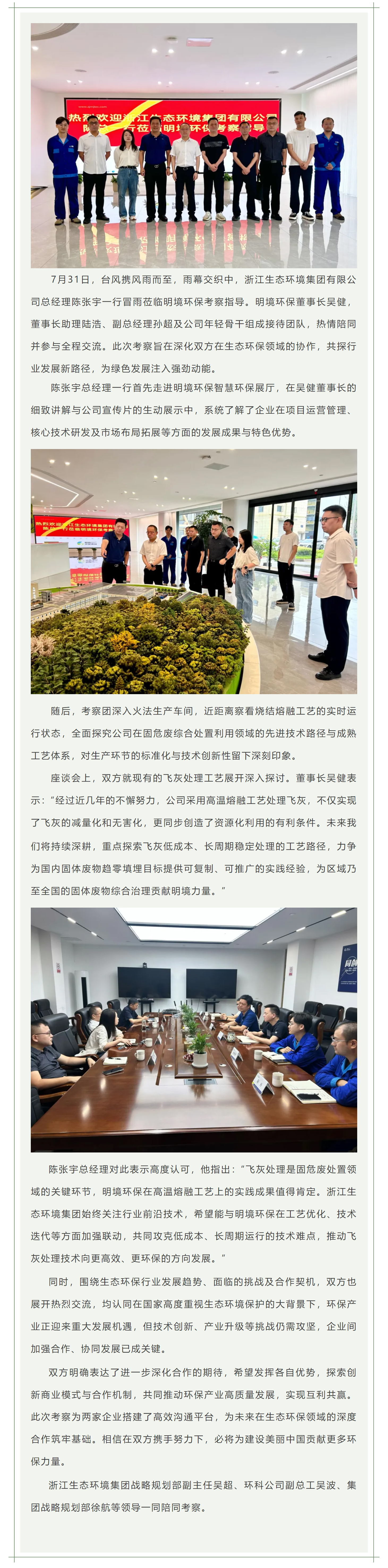 浙江生態(tài)環(huán)境集團(tuán)有限公司陳張宇一行蒞臨明境環(huán)??疾熘笇?dǎo)